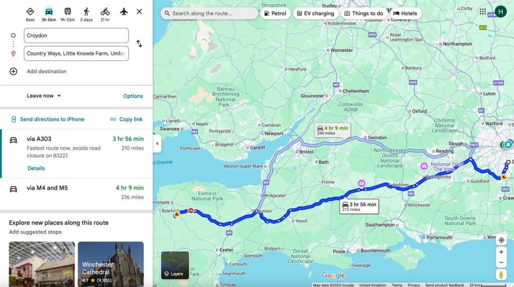 From London you’re looking at either the A303 or the M4 & M5 – I know the best is hotly debated by Dad’s everywhere…